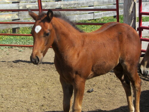 old, the bay stud colt as a weanling; all sired by Dorky Frosty Spark (son